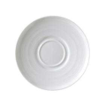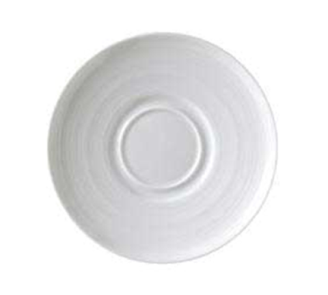 Saucer, 6" dia., round, double well, embossed, polished foot, porcelain, bright white, Premium, Euro Collection, Crystal Bay, Black Diamonds (made to order, call for special requirement)