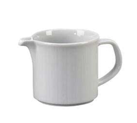 Creamer, 5-1/2 oz., with handle, embossed, polished foot, porcelain, bright white, Premium, Euro Collection, Crystal Bay, Black Diamonds (made to order, call for special requirement)