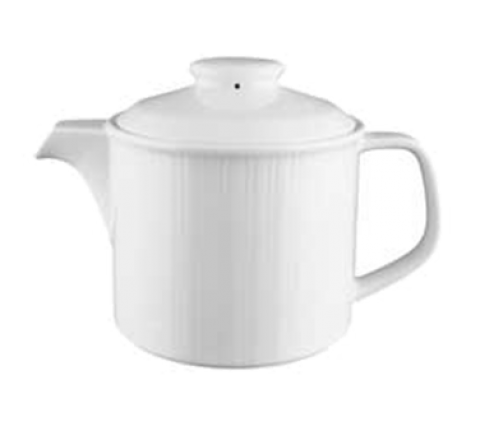 Teapot, 16 oz., with lid and handle, embossed, polished foot, porcelain, bright white, Premium, Euro Collection, Crystal Bay