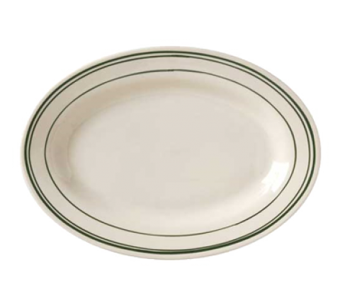 Platter, 9-3/8", wide rim, rolled edge, microwave & dishwasher safe, vitrified china, Del Mar Green Collection, American White