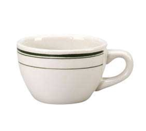 Cup, 7 oz., 3-3/4", short, with handle, microwave & dishwasher safe, vitrified china, Del Mar Green Collection, American White