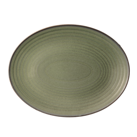 Platter, 9-1/2”, oval, coupe, polished foot, subtle embossing, Misty Green, Premium, Organics, Elements Collection
