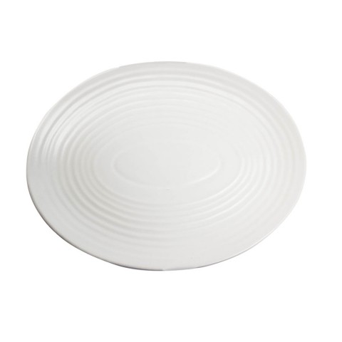 Platter, 11-1/2", oval, coupe, polished foot, subtle embossing, Chalk (matte white), Premium, Organics, Elements