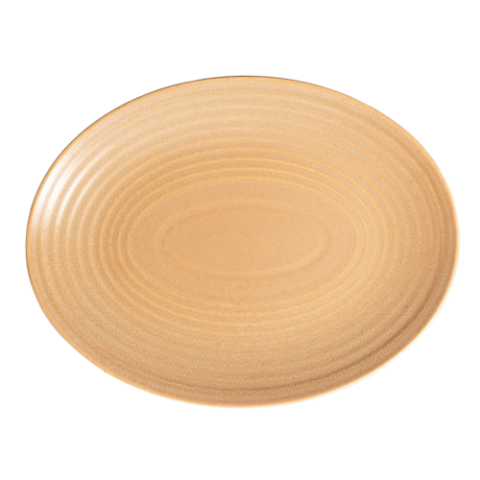 Platter, 13-1/4”, oval, coupe, polished foot, subtle embossing, Gold Dust, Premium, Organics, Elements Collection