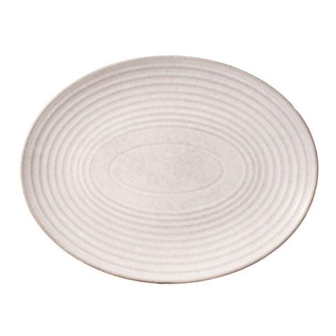 Platter, 13-1/4”, oval, coupe, polished foot, subtle embossing, Blue Fog, Premium, Organics, Elements Collection