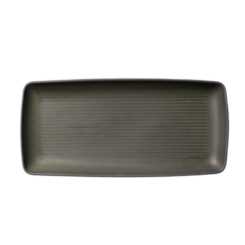 Platter, 14” x 6-1/2”, rectangular, polished foot, subtle embossing, Misty Green, Premium, Organics, Elements Collection