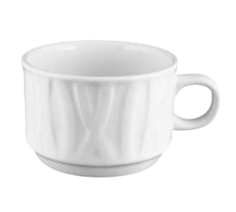 Cup, 7 oz., 3-1/4", with handle, embossed, polished foot, porcelain, bright white, Premium, Euro Collection, Grass Valley, Water Colors, blueberry (fits GV-2)