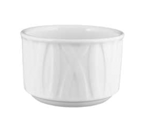 Bouillon, 8 oz., 3-1/2", round, stackable, embossed, polished foot, porcelain, bright white, Premium, Euro Collection, Grass Valley