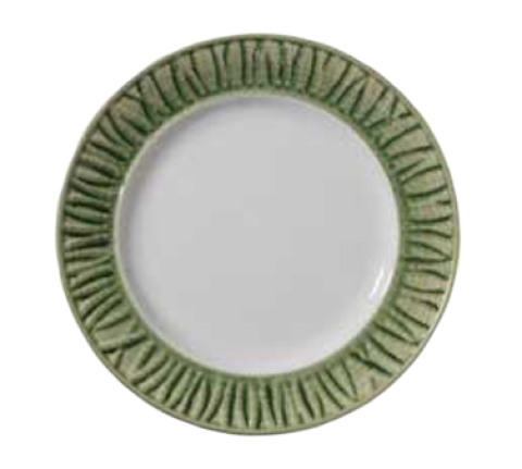 Plate, 6-1/2" dia., round, embossed, polished foot, porcelain, bright white, Premium, Euro Collection, Grass Valley, Water Colors, cilantro (made to order, call for special requirement)