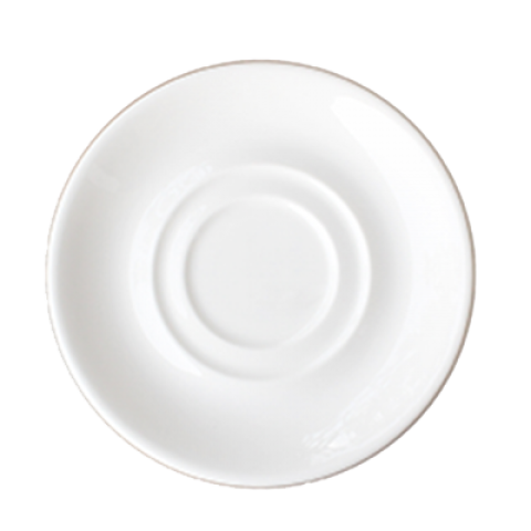 Saucer, 6" dia., round, low profile, double well, fully glazed foot, aluminum oxide reinforced body, porcelain, bone white, London Collection