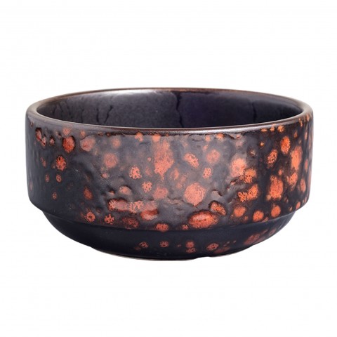 Bouillon, 10 oz., 4-5/16", round, stackable, hand painted, fully glazed foot, scratch resistant, aluminum oxide reinforced body, porcelain, matte black/terra cotta reactive glaze, Premium, London Moonstone Collection