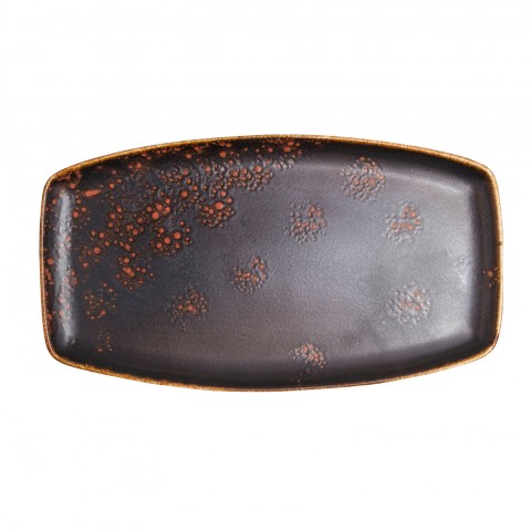 Platter, 13" x 7", oblique/rectangular, hand painted, fully glazed foot, scratch resistant, aluminum oxide reinforced body, porcelain, matte black/terra cotta reactive glaze, Premium, London Moonstone Collection