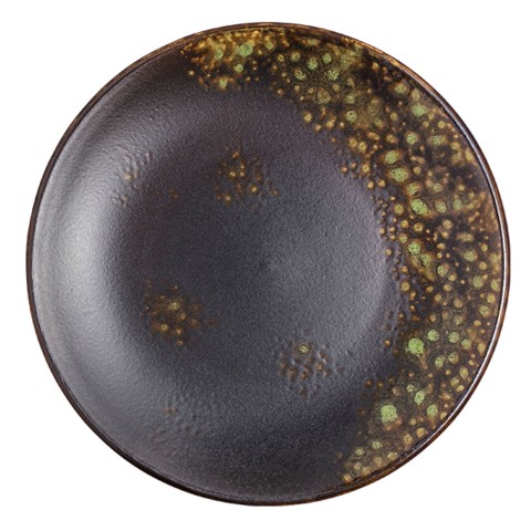 Plate, 8" dia., round, coupe, hand painted, fully glazed foot, scratch resistant, aluminum oxide reinforced body, porcelain, matte black/jade reactive glaze, Premium, London Moonstone Collection