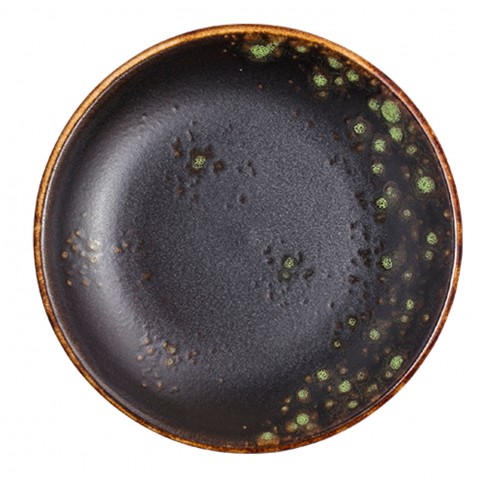 Plate, 6" dia., round, coupe, hand painted, fully glazed foot, scratch resistant, aluminum oxide reinforced body, porcelain, matte black/jade reactive glaze, Premium, London Moonstone Collection