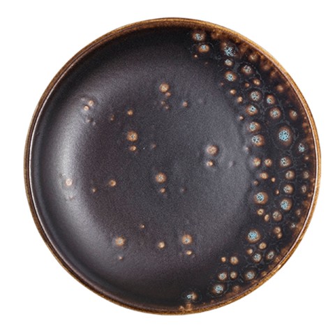 Plate, 6" dia., round, coupe, hand painted, fully glazed foot, scratch resistant, aluminum oxide reinforced body, porcelain, matte black/sky blue reactive glaze, Premium, London Moonstone Collection