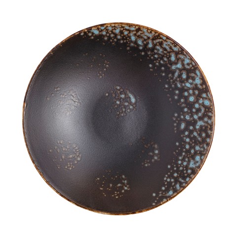 Wok Bowl, 8-1/2" dia., round, hand painted, fully glazed foot, scratch resistant, aluminum oxide reinforced body, porcelain, matte black/sky blue reactive glaze, Premium, London Moonstone Collection