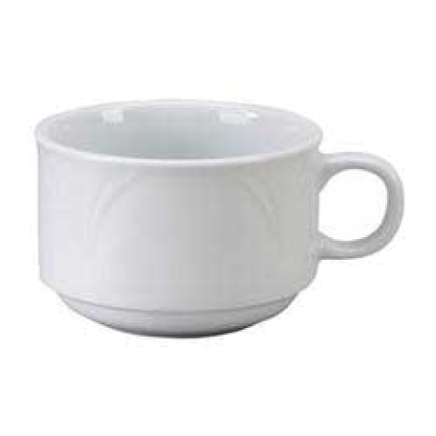 Tea/Coffee Cup, 6 oz., 3-1/4" dia., with handle, stackable, embossed, polished foot, porcelain, bright white, Premium, Euro Collection, Palm