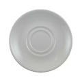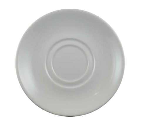 Saucer, 6" dia., round, double well, subtle embossment, rolled edge, porcelain, bright white, Universal, Radiance Collection