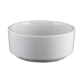 Bouillon, 8 oz., 4" dia., stackable, subtle embossment, rolled edge, porcelain, bright white, Universal, Radiance Collection (fits RA-2)