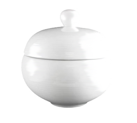 Soup Tureen, 26 oz., 5-3/8", with lid, round, subtle embossment, rolled edge, porcelain, porcelain, bright white, Universal, Radiance Collection