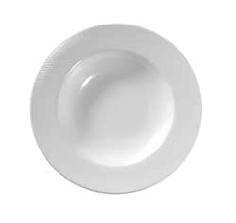 Soup Plate/Bowl, 9 oz., 8-7/8" dia., round, wide rim, polished foot, magnesium reinforced body, super white, Premium, Rubicon Collection, Terrazzo Palm(made to order, call for special requirement)