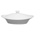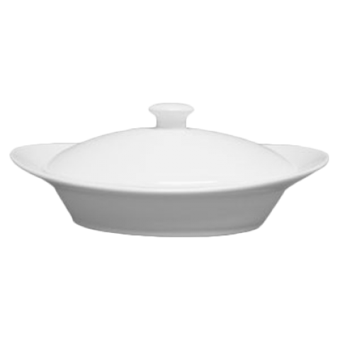 Bowl, 9 oz., 8-1/4" x 5-1/4", oval, with lid, polished foot, magnesium reinforced body, super white, Premium, Rubicon Collection