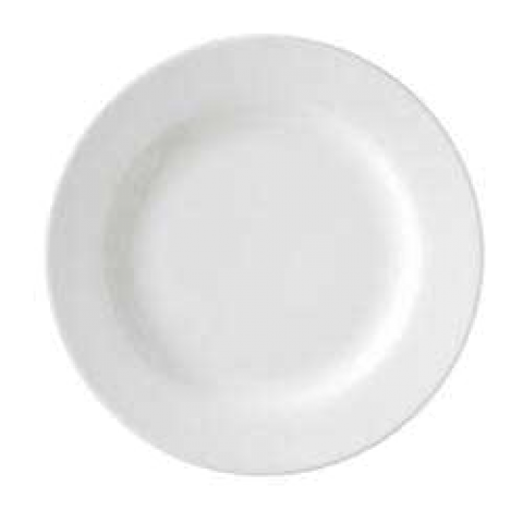 Plate, 10-1/2" dia., round, with rim, polished foot, magnesium reinforced body, super white, Premium, Rubicon Collection