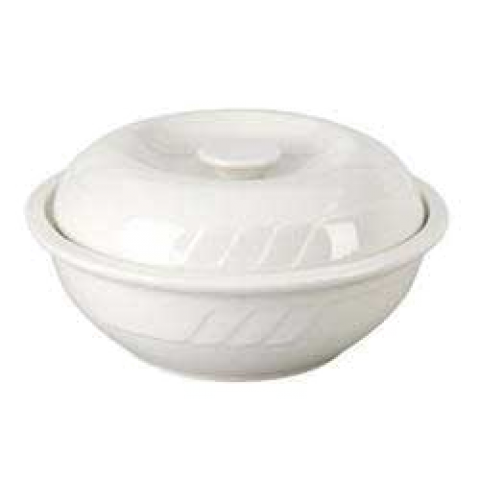 Soup Tureen, 35 oz., 8" dia., round, with lid, sculpted lines, white, American Classics, Sausalito