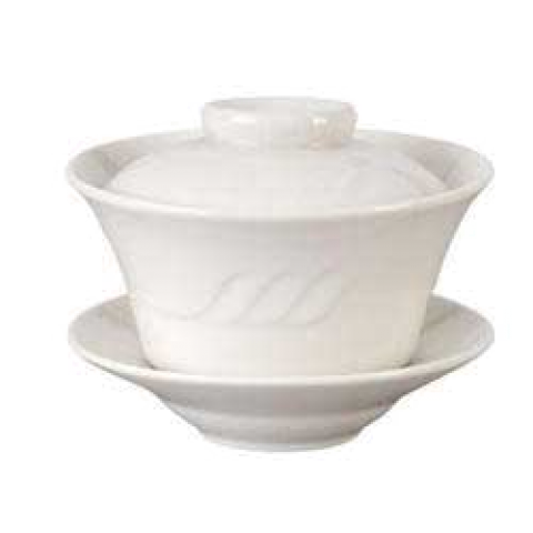 Tea Cup, 3-piece, includes: (1) cup, 6 oz., 4-1/4" dia., (1) lid, (1) saucer, sculpted lines, white, American Classics, Sausalito