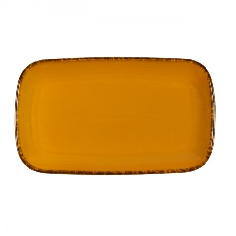 Platter, 12-1/4” x 7-1/2” x 1-1/8”, rectangular, hand painted rim, porcelain, gloss finish, Pumpkin, Universal, Woodland Collection