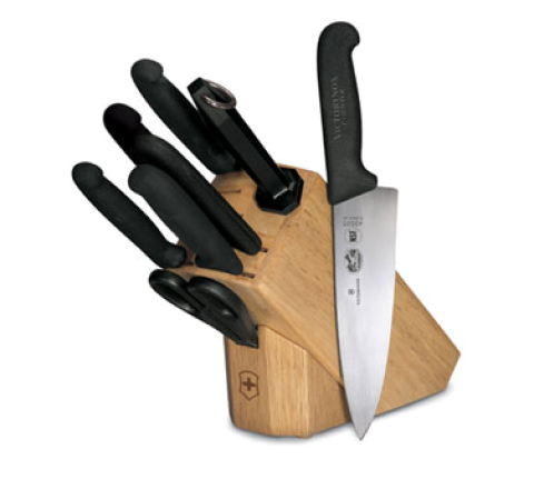 Block Set, 8 piece, includes: 4" paring, 6" boning, 8" chef's, 8" bread, 10" slicer, 10" steel, kitchen shear & #7.9093.87 slant oak block, 7 slot, NSF