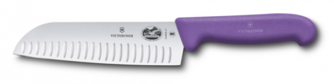 Santoku Knife, 7", 1-1/2" width at handle, granton edge, purple Fibrox® Pro handle, stamped