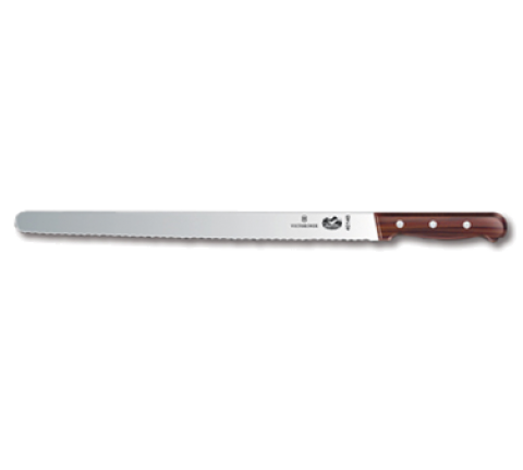 Slicer Knife, 14" blade, serrated edge, 1-1/4" width at handle, Wood handle