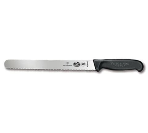Slicer Knife, 10" blade, 1-1/4" width at handle, serrated edge, black Fibrox® nylon, slip resistant, NSF