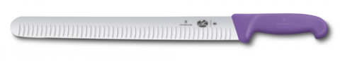 Slicer Knife, 14" wide blade, 1-1/2" width at handle, granton edge, purple Fibrox® nylon handle, slip resistant, NSF