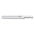 Slicer Knife, 12" wide blade, 1-1/4" width at handle, granton edge, white Fibrox® nylon handle, slip resistant, NSF