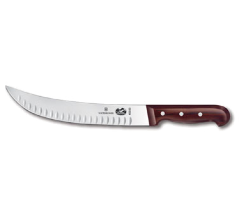 Cimeter Knife, 10" blade, curved, granton edge, wood handle