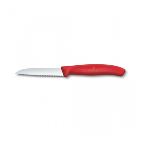 Paring Knife, 3-1/4" sheep's foot blade, serrated edge, red