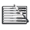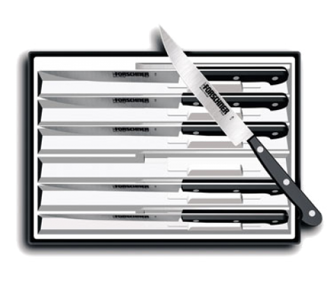 Steak Knife Set, 6 piece (#7.6029.4), serrated, pointed tip, black POM handles with rivets, NSF