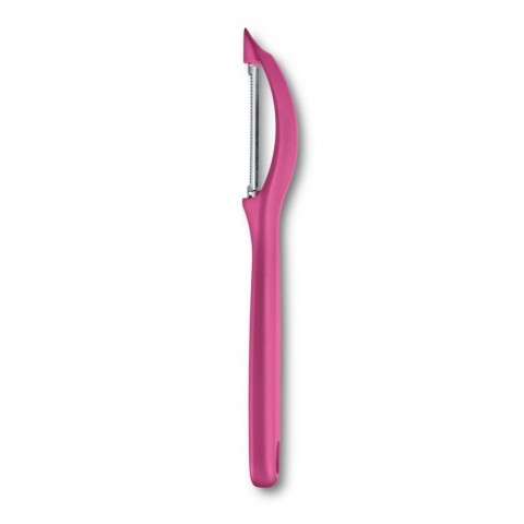 Victorinox® Universal Peeler, 6-3/4" long, serrated edge, stainless steel blade, ergonomic plastic handle, dishwasher safe, pink (boxed)