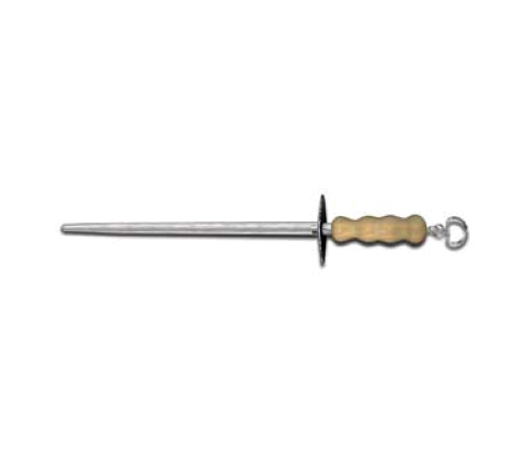 Sharpening Steel, 12" helical cut, round, loose ring, light wood handle, with hangtag