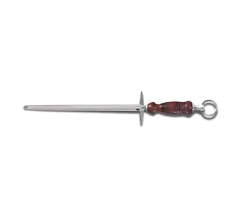 Sharpening Steel, 12" fine cut, round, loose ring, dark wood handle, with hangtag