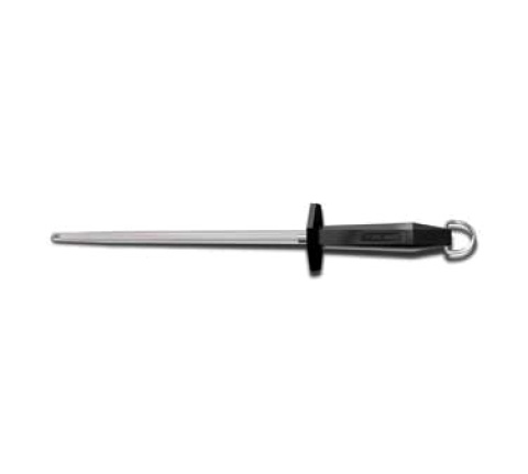 Sharpening Steel, 10" combination cut, loose ring, black plastic handle, with hangtag