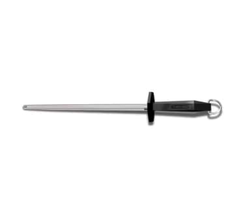 Sharpening Steel, 12" regular cut, round, loose ring, black plastic handle, with hangtag