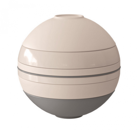 Dinner Set, 9.41" dia. x 9.17"H, premium porcelain, round, washing by hand recommended, set includes: (2) La Boule Bowl, 620 ml, (2) La Boule Pasta bowl, 500 ml, (2) La Boule Dinner plate, 23.8 cm dia., and (1) La Boule Serving platter, 23.9 cm dia., beige, Iconic La Boule