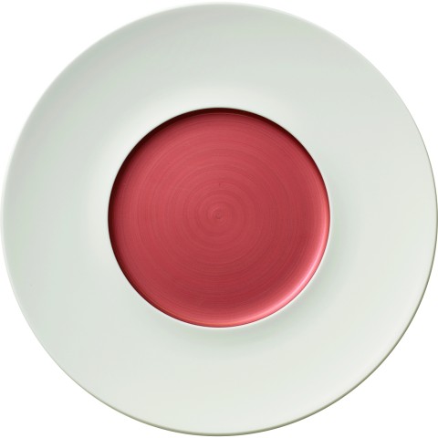 Plate, 10-3/4 oz., 11-1/4" dia., round, deep, 5-1/2" dia. well, dishwasher, microwave and salamander safe, premium porcelain, white rim/copper well, with Cover Seal© metallic-looking finish, Copper Glow
