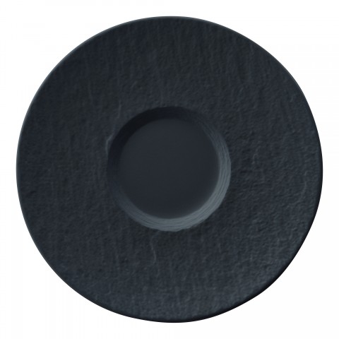 Saucer, 6-3/4 " dia., round, dishwasher and microwave safe, porcelain, The Rock, black shale