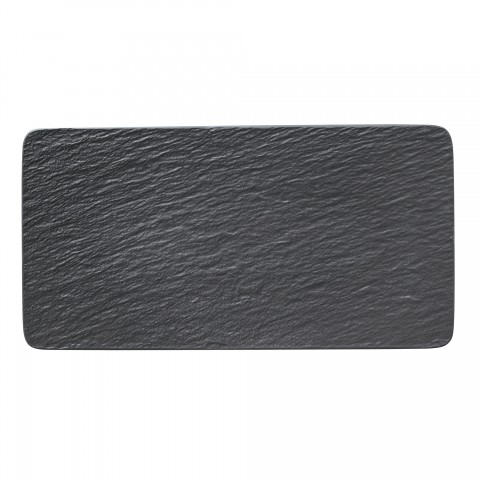 Plate, 13-3/4 x 7", rectangular, dishwasher and microwave safe, porcelain, The Rock, black shale