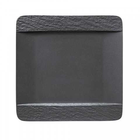 Plate, 11", square, flat, dishwasher and microwave safe, porcelain, The Rock, black shale