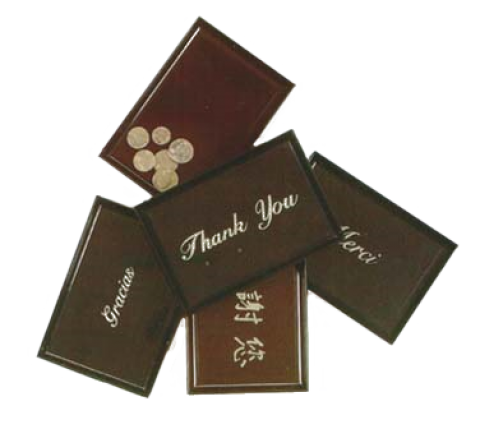 Tip Tray, "Thank You" imprinted, 4-1/2" x 6-1/2", scratch-resistant, black, dishwasher safe, Made in USA (Refer to vollrathfoodservice.com for full warranty policy)